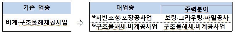 (방법) 지반조성포장공사업으로 업종전환 : 이 경우, 보링·그라우팅·파일공사 주력분야취득 가능