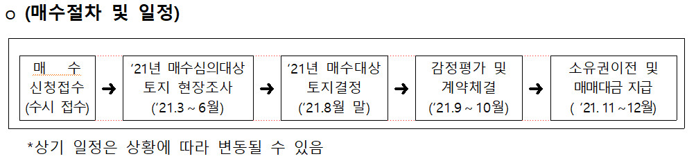 토지주택공사 LH 에서는 메년 초에 개발제한구역 토지매수 사업 공고를 하고 있다.