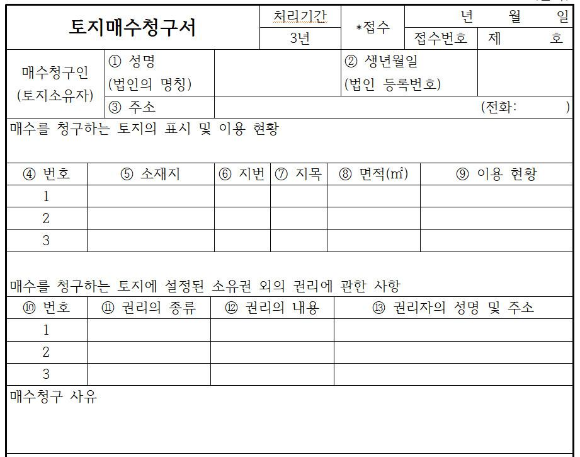 법령에는 국토교통부장관에게 위 토지매수청구서를 제출하도록 되어있지만 , 실제로는 위임에 의하여 토지주택공사 LH 측에 제출 하게 되어 있다.