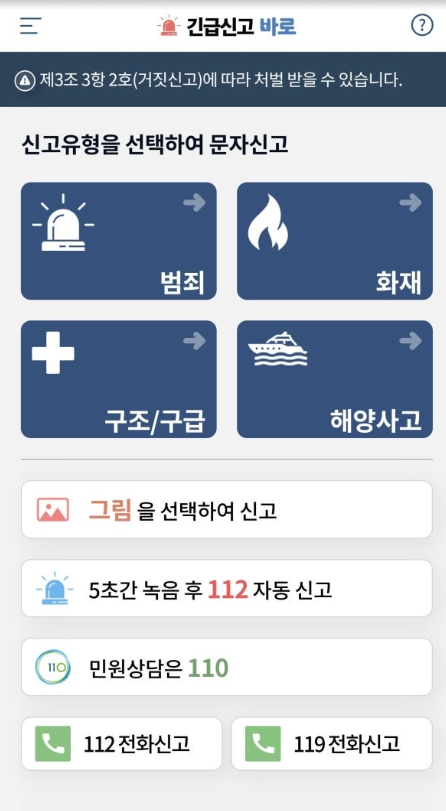 다만 이름이 좀 길고 어려운데 " 긴급신고바로앱 " 이라는 명칭이 그 앱의 의미는 바로 알겠으나 너무 길고 투박한 느낌 입니다.