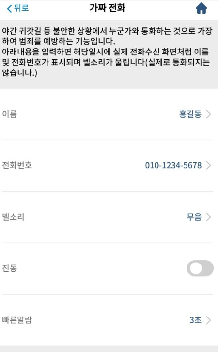 여기서 가짜 전화받기 메뉴가 재미 있습니다.