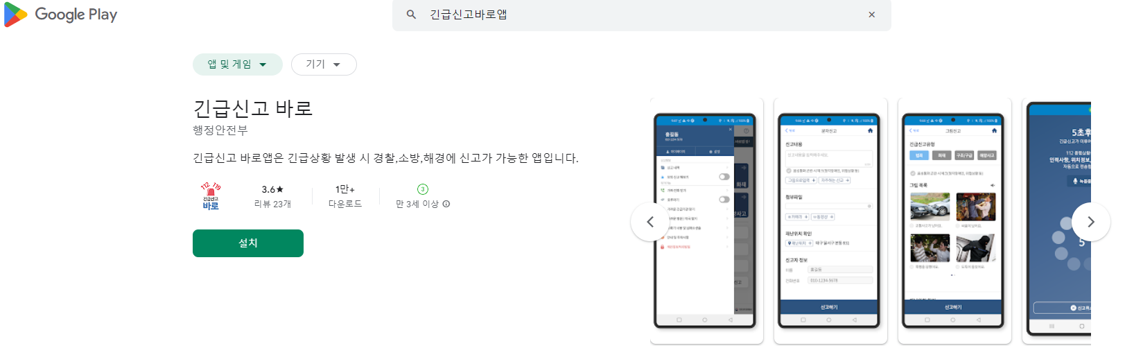 여기를 클릭하면 위 앱을 설치할 수 있습니다. : 긴급신고바로앱 설치하기