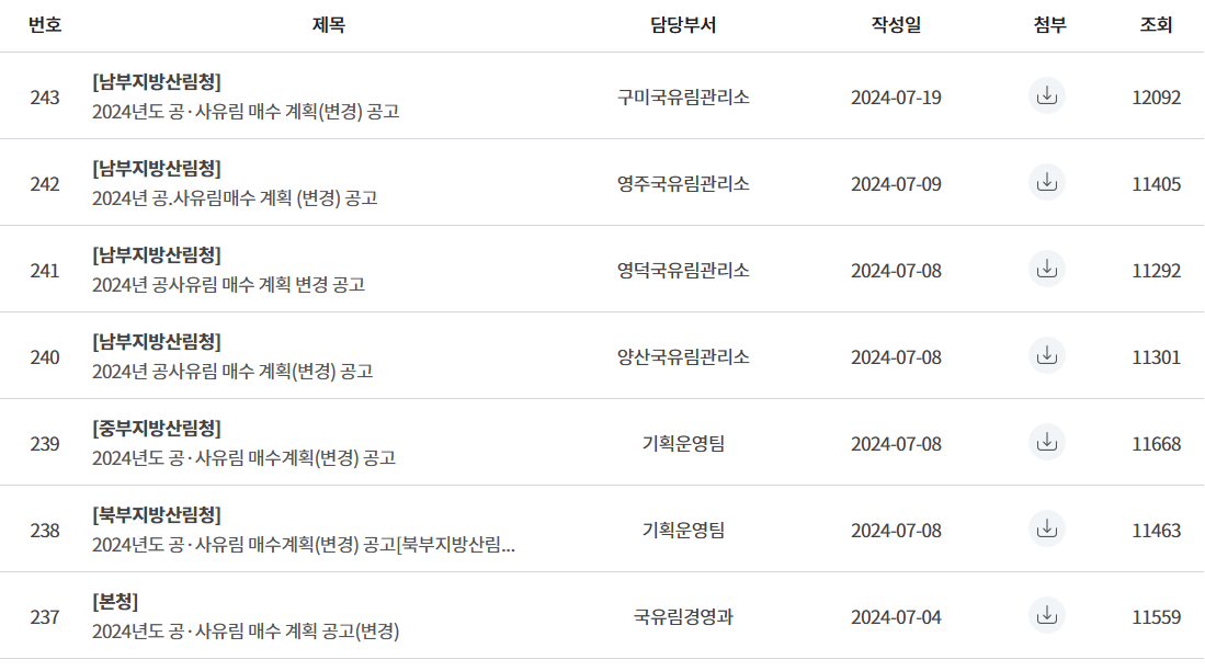 1. 산림청 홈페이지 공고 확인