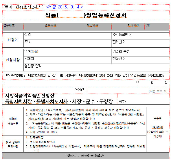 식품첨가물제조업 등록을 하려는 자는 별지 41호의 2서식의 2서식인 영업 등록신청서를 작성하고 별도의 필요한 서류를 첨부하여 합니다.