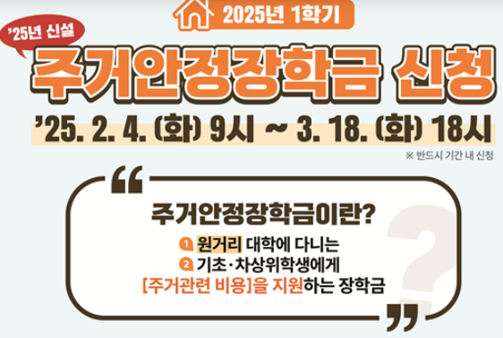 올해 처음 시행되는 대학생 대상 주거안정장학금, 2월 4일부터 신청하세요!