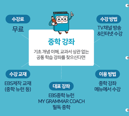 이 서비스는 기존의 'EBS 중학' 강좌와는 다르게 교과서와 시중 유명 교재를 기반으로 제작되고 제공됩니다.