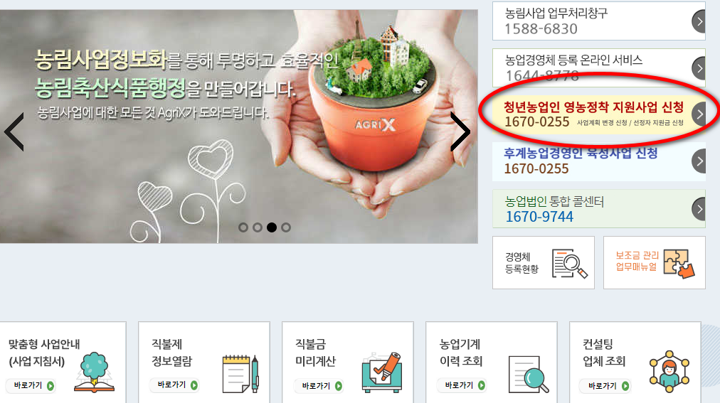 농림사업정보시스템에서 청년농업인 영농지원사업 신청하기.