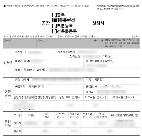 위와같은 서식으로 공장등록 신청 할 때와 같은 서식을 사용 합니다.