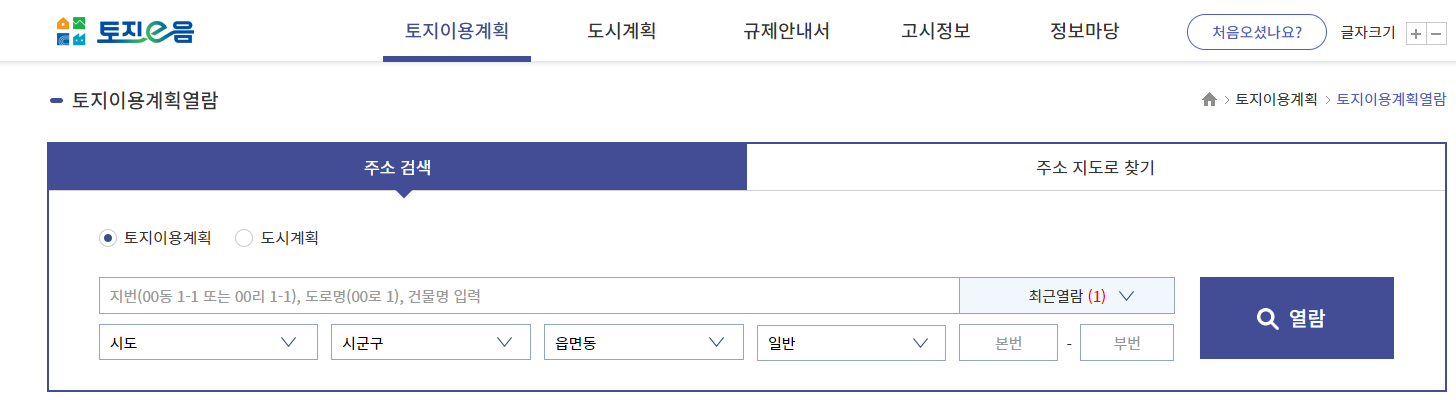 토지이용계획확인원열람