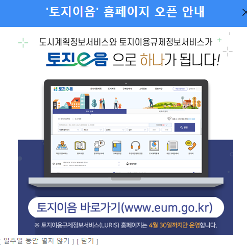 그런데 토지이용규제시스템으로 가면 또 다시 도시계획정보서비스 와 토지이용규제 서비스가 통합되었다고 또 다른 사이트로 이동하라고 한다.