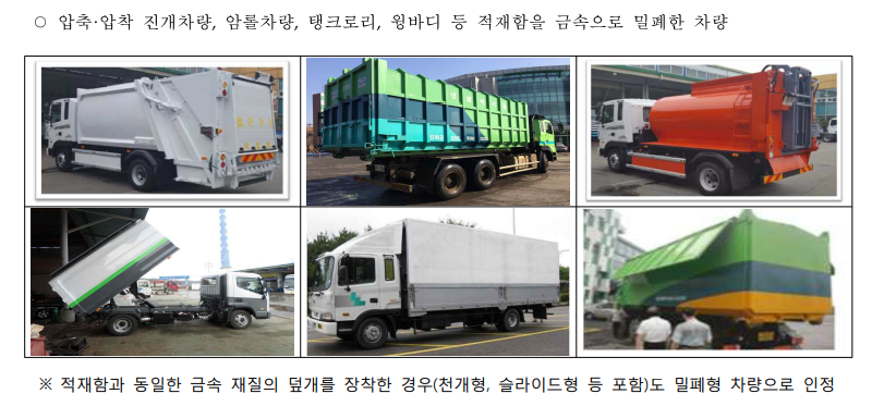 (예외2) 합성수지 등 포장 덮개 설치차량